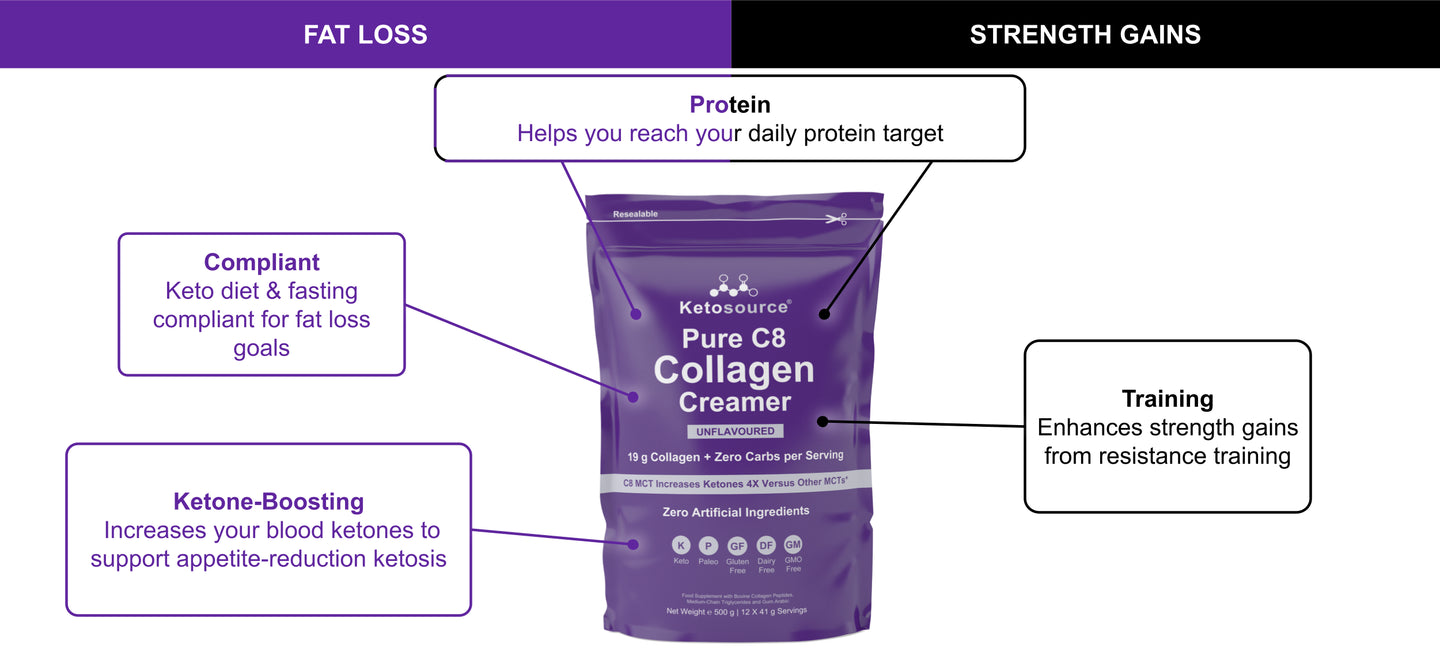 - Active Ingredient Purity. Pure C8 Collagen Creamer has the highest purity level of the active ketone boosting ingredient C8 MCT.