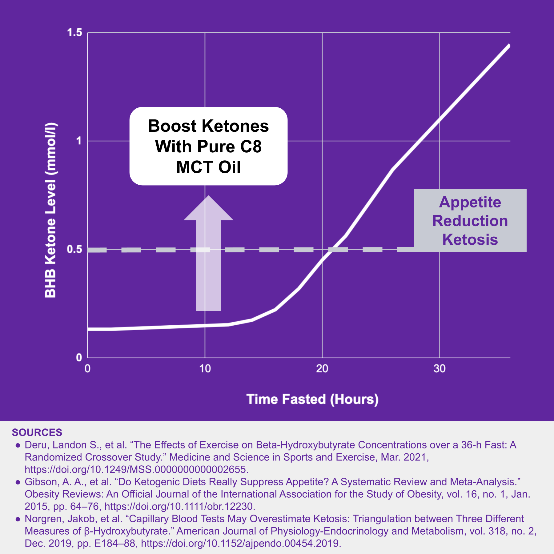 ⦿ The Pure C8 MCT Oil in the Fasting Support can boost your ketones earlier. So that you get the appetite reduction benefit when you need it most.